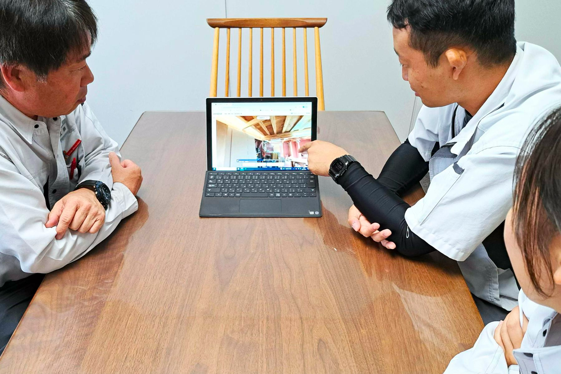 導入後の効果は大きく、まず現場監督の移動時間が大幅に減りました。移動時間が少なくなることで、残業や休日出勤も少なくなっています。 また、撮影画像をそのままお客様への報告に活用できるようになり、問い合わせ対応のスピードも向上しました。若手監督も上司と同じ画面を見ながら相談できるようになり、現場で一人で抱え込む負担が軽減し、育成にも大きな効果を発揮しています。